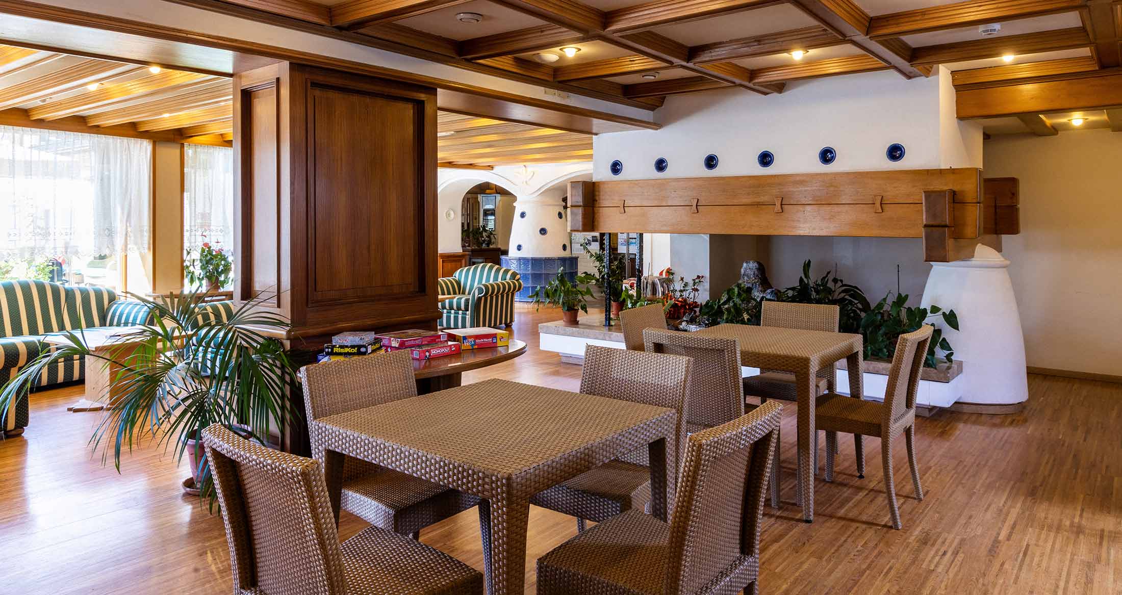 Inside the hotel, there is the main restaurant where you can taste typical regional and national dishes, a tavern bar for an aperitif after coming back from the ski slopes or a pleasant drink after dinner listening to live music, a TV room, a games room, and a reading room.